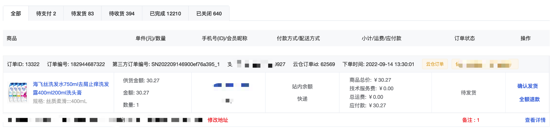 确认付款:如果是未支付订单,支持手动确认付款,注意手动确认付款不会扣除会员余额,如果客户线下充值余额,运营人员后台给会员充值余额后,需要支付未付款订单的,请让客户在会员中心自行完成支付。