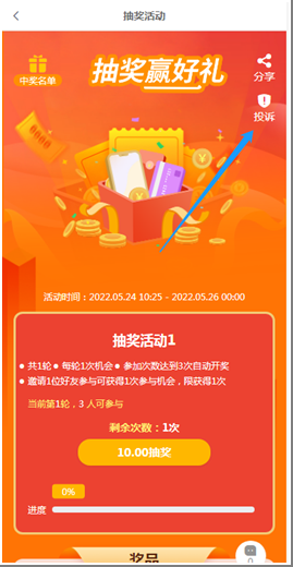 5, 可分享活动给好友获得抽奖次数,好友抽奖后分享者则自动增加一次抽奖次数