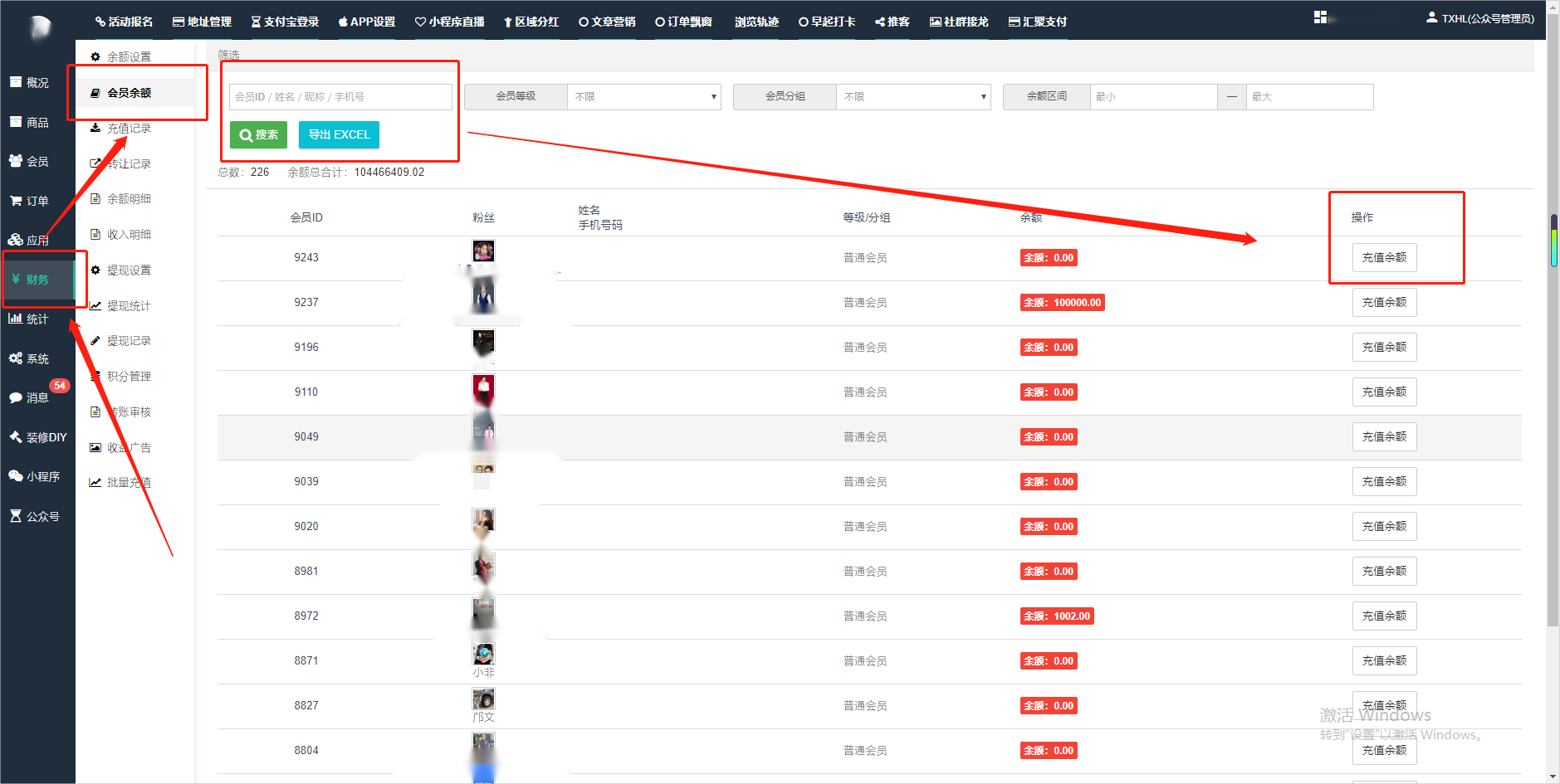 目录 搜索 展开 一、前期准备资料二、数字乡村码-上线操作指南1、服务号的申请流程及认证2、申请小程序流程3、开放平台绑定小程序和公众号三、数字乡村码-系统操作数字乡村码系统管理-概况数字乡村码-商品管理1、发布商品2、商品列表3、商品表单4、商品分类5、品牌管理6、配送模板7、评论管理8、优惠券管理9、商品标签10、退货地址设置11、满额优惠12、批量操作13、配送方式14、基础设置15、商品隐藏四、数字乡村码-会员管理1、全部会员2、会员等级3、会员分组4、资格申请5、会员设置6、推广中心设置7、会员邀请码8、会员关系链修改关系链修改记录9、会员合并记录10、账号注销管理11、会员设置中心五、数字乡村码-订单管理1、订单管理列表2、订单处理流程3、订单状态4、订单修改价格5、订单退款退货6、多包裹发货7、批量发货订单操作步骤8、催发货订单9、物流查询六、数字乡村码-财务管理1、余额设置2、会员余额3、充值记录4、转让记录5、余额明细6、收入明细7、提现设置8、提现统计9、积分管理10、转账审核11、收益广告12、批量充值七、数字乡村码-系统管理1、商城入口2、商城设置①、商城设置②、订单设置③、物流查询④、短信⑤、联系方式⑥、分类⑦、优惠券⑧、分享⑨、幻灯片⑩、广告位⑫、地图设置3、交易设置4、微信模板消息自定义消息模板(新版)自定义消息模板(旧版)小程序消息模板公众号模板消息变更公告5、语言设置6、权限管理7、多媒体管理八、数字乡村码-消息管理九、数字乡村码-应用管理十、数字乡村码系统-数据统计十一、数字乡村码-页面装修DIY1、模板管理2、店铺页面3、顶部导航4、底部导航5、DIY模板市场6、首屏广告7、基础设置8、装修DIY尺寸建议十二、供应商功能插件操作指南1、供应商2、门店-收银台门店申请和使用步骤门店管理①、门店-收银台 营销设置②、门店-收银台 分润设置门店分类门店申请门店审核门店商品门店商品订单收银台订单数据统计核销员基础设置默认设置门店装修3、微社区4、会务活动十三、营销插件操作指南活动报名提货卡新人奖微店问卷调查积分视频分享1、视频分享基础设置2、视频分享发现管理3、视频分享分类管理4、视频分享评论管理5、视频分享分红记录6、视频分享短视频中心每日红包幸运大抽奖签到优惠券二维码任务奖励优惠劵文章音频文章付费文章限时购新海报拓客卡操作流程积分活动素材中心视频红包十四、入驻门店应用类1、门店预约2、附近商品3、门店定位设置4、门店控制5、门店满额包邮6、门店满额减7、导入商品8、门店搜索9、门店股东10、核销券11、多门店核销1、商城后台设置2、前端功能演示十五、常见问题1、后台登录密码修改流程2、会员-余额,积分,后台如何进行充值与扣除3、如何修改上下级关系4、一种万能的获取商城小程序路径的方法 暂无相关搜索结果! 阅读次数:1707 本文档使用 模王系统 发布 2、会员-余额,积分,后台如何进行充值与扣除 会员-余额,积分,后台如何进行充值与扣除一.如何进行余额充值-扣除1.财务-会员余额-搜索会员昵称-右边点击充值余额2.扣除余额,只需要在充值金额前加上 - 号;比如充值-100,等于扣除100余额二,如何手动充值积分-扣除积分(充值与扣除逻辑跟余额是一样的)文档更新时间: 2024-01-05 14:28 作者:链上旅行