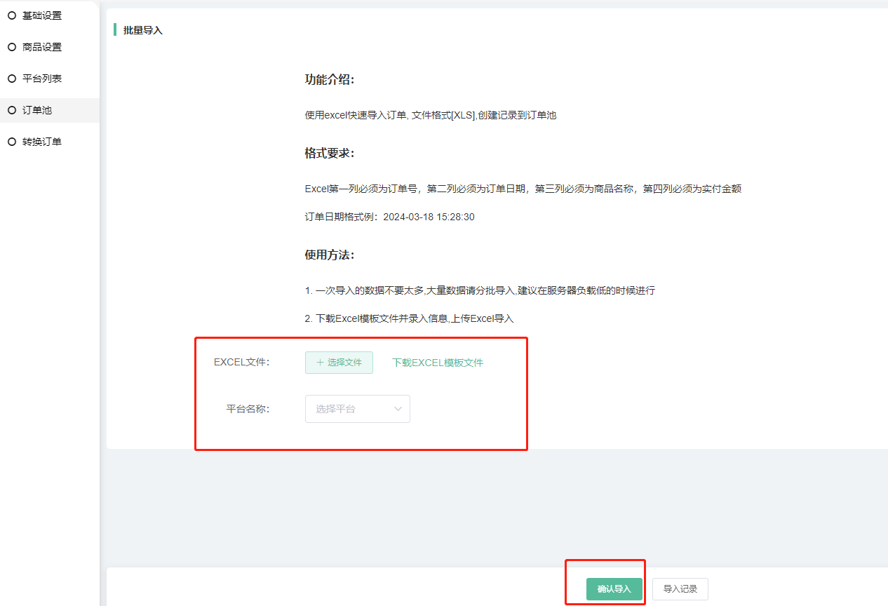 可导入第三方平台订单